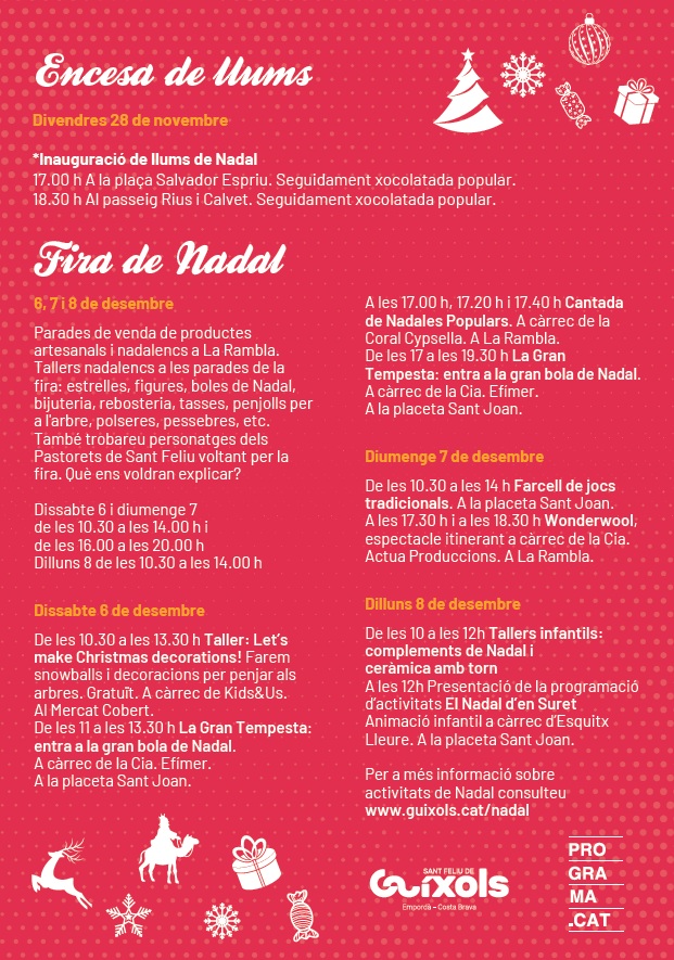 Per a més informació sobre activitats de Nadal consulteu www.guixols.cat/nadal